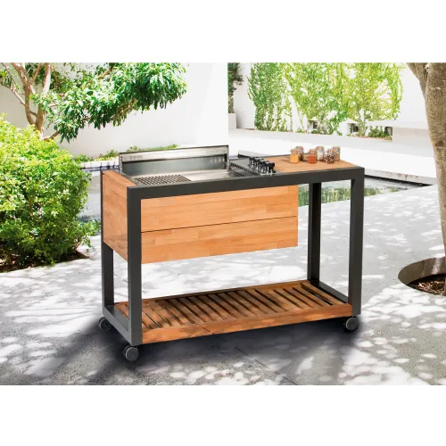 Astella Styles Outdoor Mobile Grill Island, 4 Burner, Propane Gas, Teak/Black