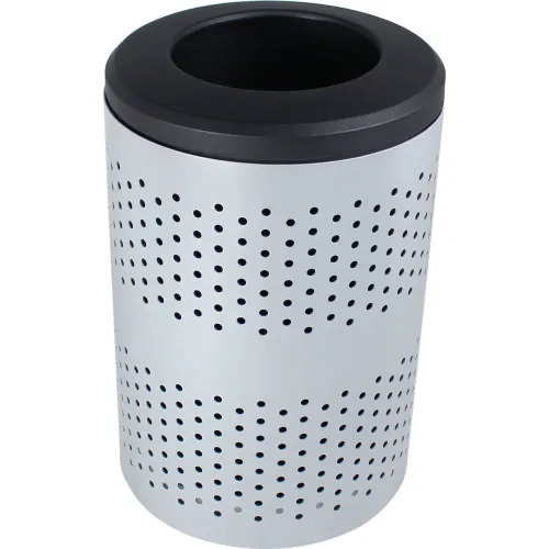 Busch Systems Outdoor Perforated Steel Trash Can With Liner, 45 Gallon, Silver/Black