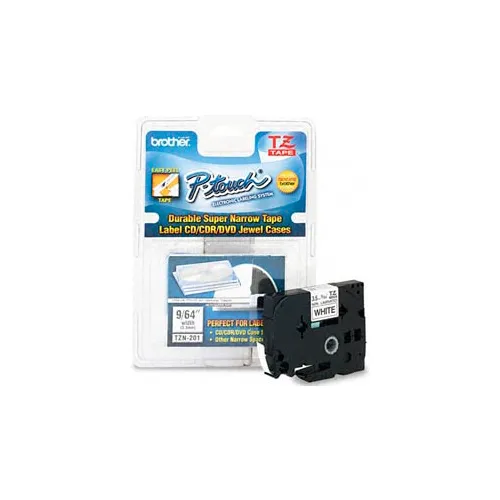 P-Touch Cartridge, TZ Super-Narrow Non-Laminated Tape, Black-on-White, 1/8W