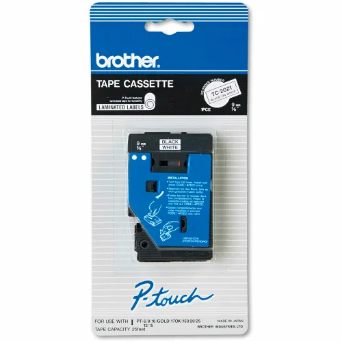 Brother® P-Touch® TC Tape Cartridge, 3/8"W, Black on White