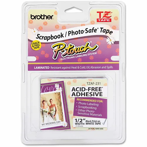 Brother® P-Touch® TZ Photo-Safe Tape Cartridge, 1/2"W, Black on White