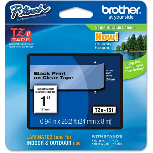 Brother® P-Touch® TZe Labeling Tape, 1"W, Black on Clear