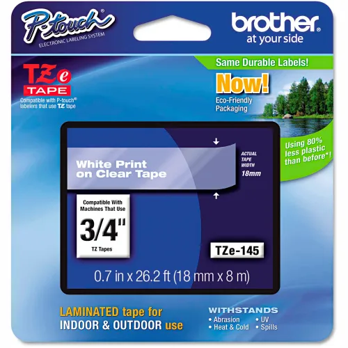 Brother® P-Touch® TZe Labeling Tape, 3/4"W, White on Clear