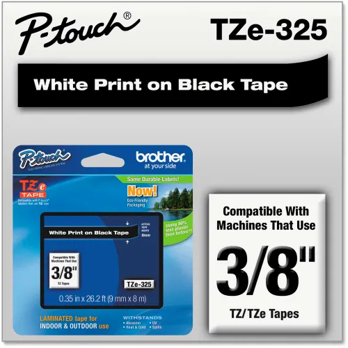 Brother® P-Touch® TZe Labeling Tape, 3/8"W, White on Black