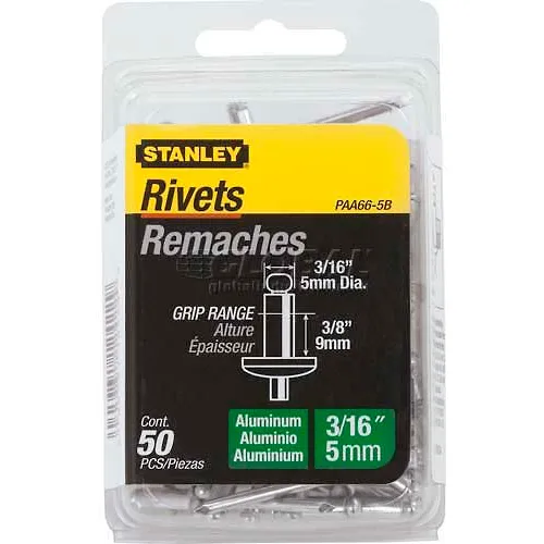 Stanley PAA66-5B Aluminum Rivets 3/16" x 3/8", 50 Pack - Pkg Qty 5