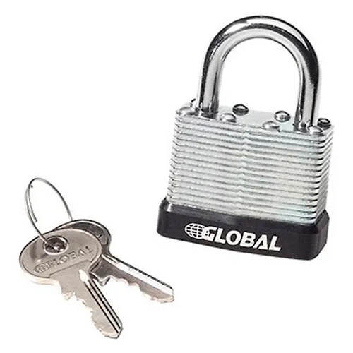 Global Industrial General Security Laminated Steel Padlock, Bumper & 2 Keys, Keyed Differently