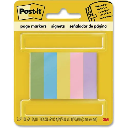 Post-it® Page Markers, 1/2" x 2", Assorted Ultra, 100 Flags/Pad, 5 Pads/Pack