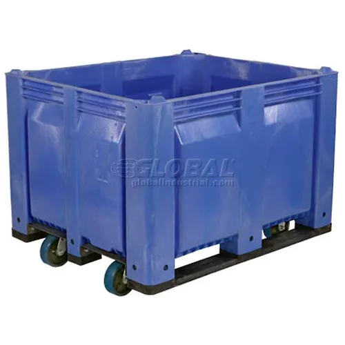 Decade® Solid Wall Pallet Container w/ 6" Casters, 48"L x 40"W x 31"H, 1500 lb. Capacity, Blue