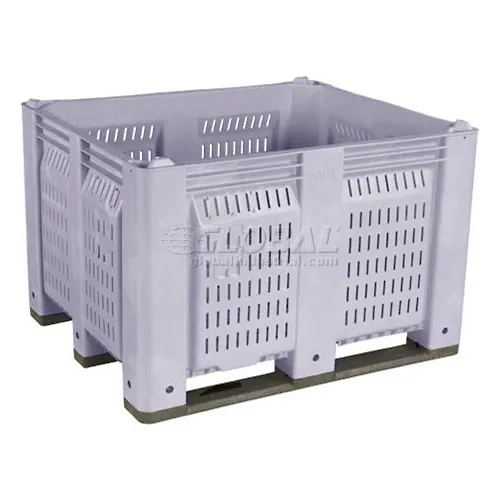 Decade® Vented Wall Pallet Container, Long Side Runners, 48"L x 40"W x 31"H, 1500 lb. Cap, Gray