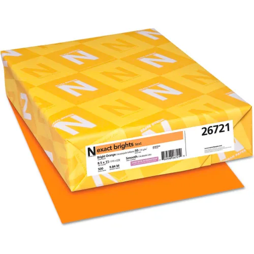 Colored Paper - Neenah Paper Exact Brights Paper, Orange, 8-1/2" x 11", 20 lb., 500 Sheets/Ream