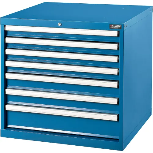 Global Industrial Modular Drawer Cabinet, 7 Drawers, w/Lock, 30"Wx27"Dx29-1/2"H, Blue