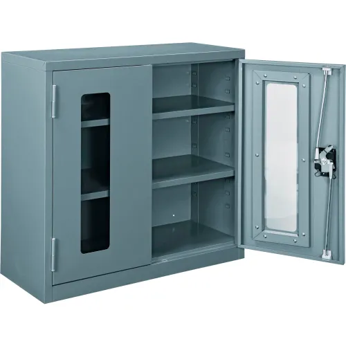 Global Industrial Clear View Wall Storage Cabinet, 30"W x 12"D x 30"H, Assembled, Gray