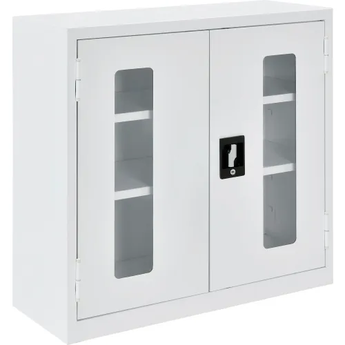 Global Industrial Clear View Wall Storage Cabinet, 30"W x 12"D x 30"H, Assembled, Off White