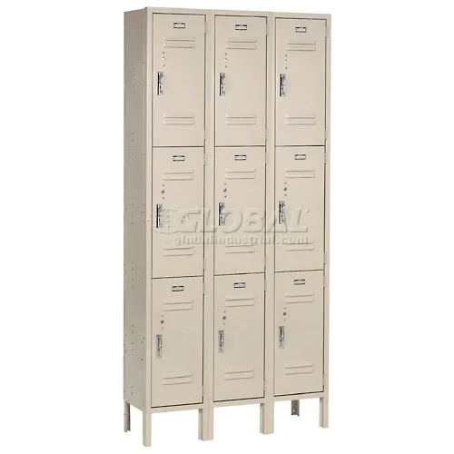 Global Industrial Paramount® 3-Tier 9 Door Locker, 36"W x 15"D x 78"H, Tan, Assembled