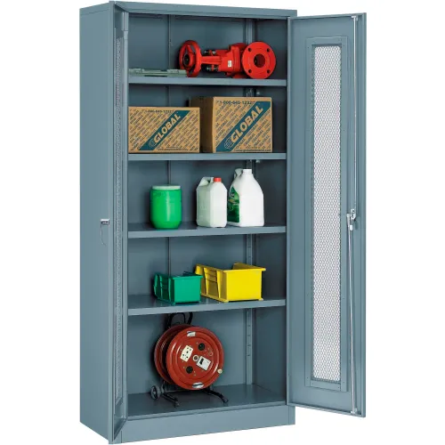 Global Industrial Storage Cabinet, Expanded Metal Door, 36"W x 18"D x 78"H, Assembled, Gray