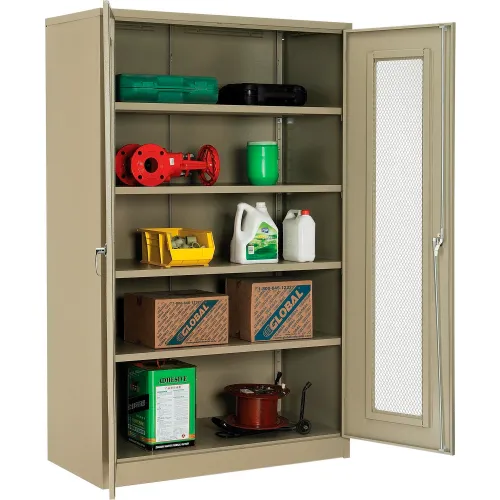 Global Industrial Storage Cabinet, Expanded Metal Door, 48"W x 24"D x 78"H, Unassembled, Tan