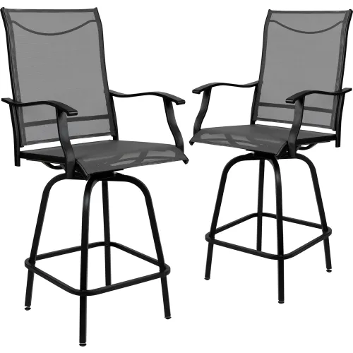 Flash Furniture Patio Bar Height Stools, All-Weather Textilene Sling Fabric Seat & Back, Gray, 2/PK