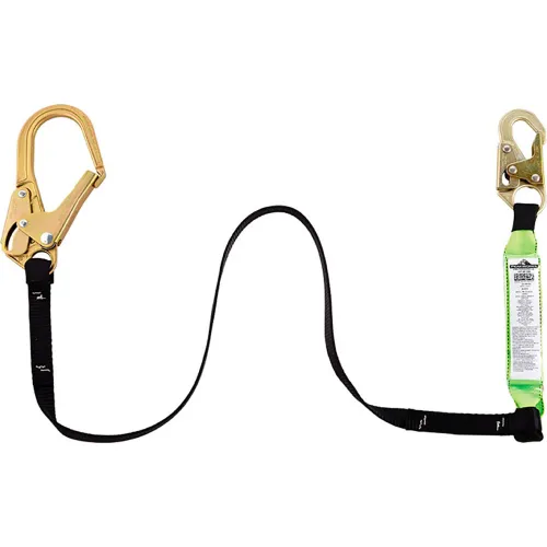PeakWorks® Shock Absorbing Lanyard, 1" Webbing, Adjustable, Single Leg, Snap & Form Hook, 6'L