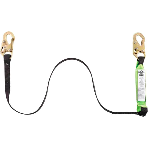 PeakWorks® Shock Absorbing Lanyard, 1" Webbing, Adjustable, Single Leg, Snap Hook, 6'L