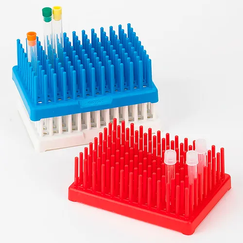 Peg Tube Rack, Reinforced Polypropylene, 17mm, 50-Place (66 Pegs), Red, 2/Pack