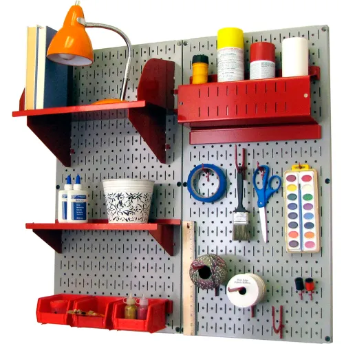 Wall Control Pegboard Hobby Craft Organizer Storage Kit, Gray/Red, 32" X 32" X 9"