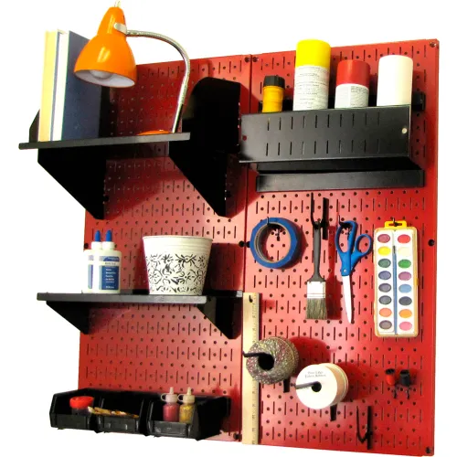 Wall Control Pegboard Hobby Craft Organizer Storage Kit, Red/Black, 32" X 32" X 9"