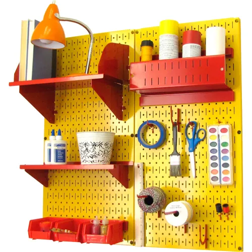Wall Control Pegboard Hobby Craft Organizer Storage Kit, Yellow/Red, 32" X 32" X 9"