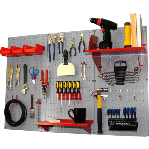Wall Control Pegboard Standard Tool Storage Kit, Gray/Red, 48" X 32" X 9"