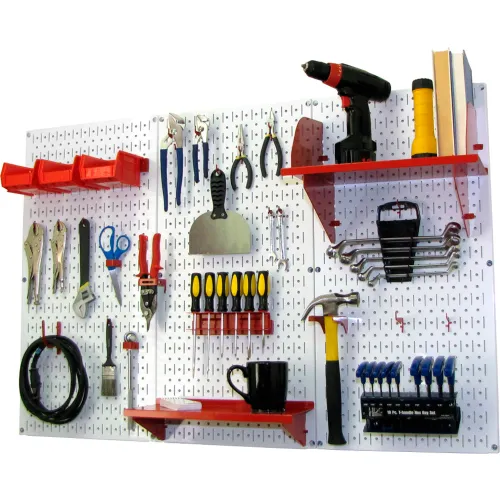 Wall Control Pegboard Standard Tool Storage Kit, White/Red, 48" X 32" X 9"