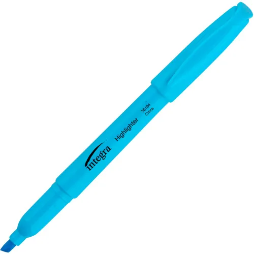 Integra™ Pen Style Highlighter, Chisel Tip, Fluorescent Blue Ink, Dozen