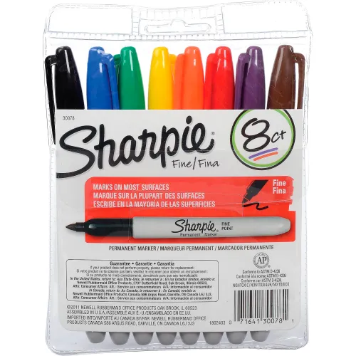 Sharpie® Permanent Marker, Pen Style, Fine Point, Assorted Ink, 8/Set - Pkg Qty 12