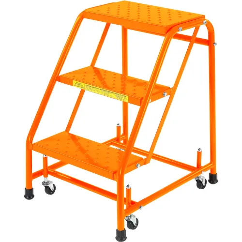 Perforated 16"W 3 Step Steel Rolling Ladder 10"D Top Step - Orange - 318P-O