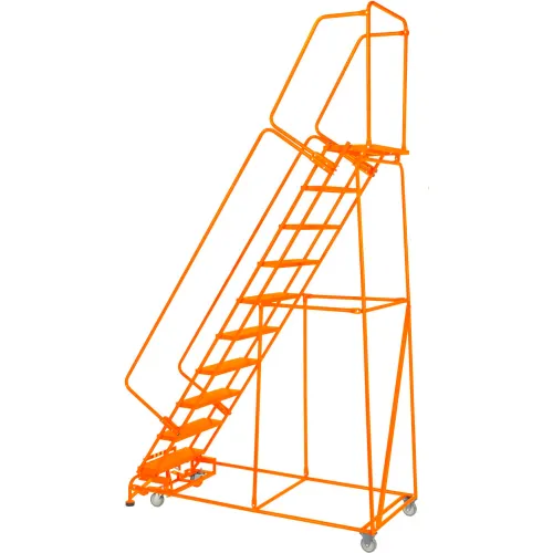 Perforated 24"W 9 Step Steel Rolling Ladder 21"D Top Step W/Handrails Lock Step Orange - FS093221P-O