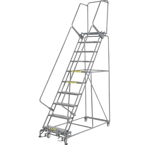 Perforated 24"W 10 Step Steel Rolling Ladder 14"D Top Step - FS103214P