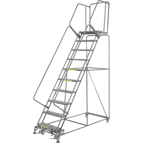 Ballymore Steel Perforated 10-Step Rolling Ladder, Gray, 32" x 80" x 100"