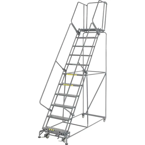 Perforated 24"W 11 Step Steel Rolling Ladder 21"D Top Step - FS113221P