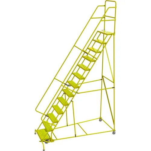 Tri Arc Perforated 24"W 13 Step Steel Rolling Ladder, 10"D Top Step - KDSR113246-Y