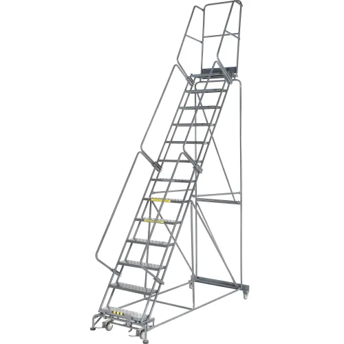 Perforated 24"W 13 Step Steel Rolling Ladder 14"D Top Step - FS134014P