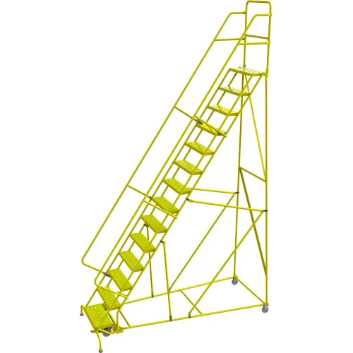 Tri Arc Perforated 24"W 14 Step Steel Rolling Ladder, 10"D Top Step - KDSR114246-Y
