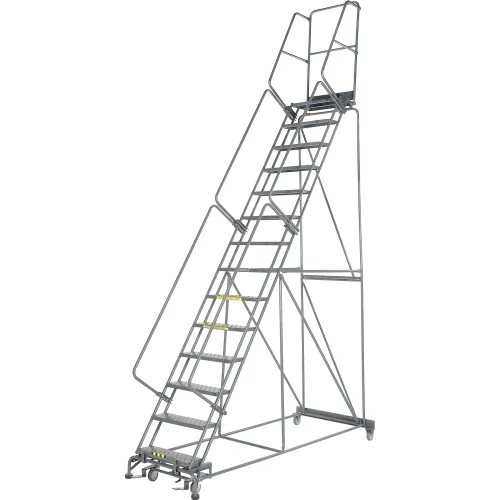 Perforated 24"W 14 Step Steel Rolling Ladder 14"D Top Step - FS144014P