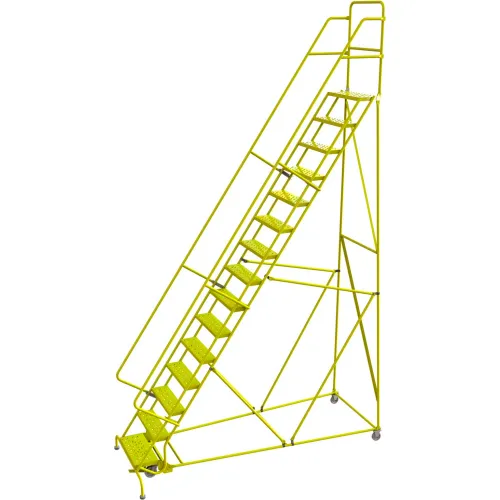 Tri Arc Perforated 24"W 15 Step Steel Rolling Ladder, 10"D Top Step - KDSR115246-Y