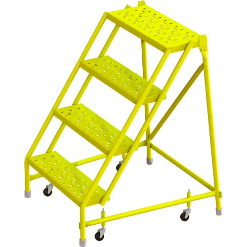 Tri Arc Perforated 24"W 4 Step Steel Rolling Ladder, 10"D Top Step - KDSR004246-Y
