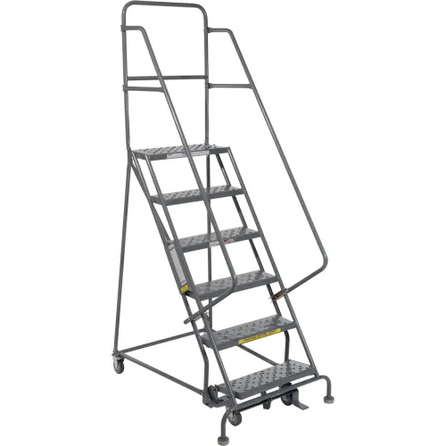 6 Step 24"W 20"D Top Step Steel Rolling Ladder - Perforated Tread - KDSR106246-D2