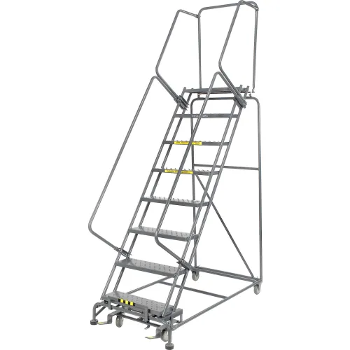 Perforated 24"W 8 Step Steel Rolling Ladder 14"D Top Step - FS083214P