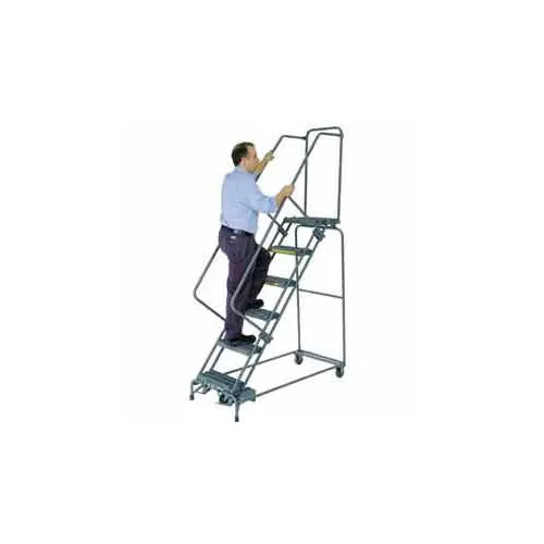 Perforated 24"W 6 Step Steel Rolling Ladder 21"D Top Step, Lock Type B, W/Cal OSHA Handrail