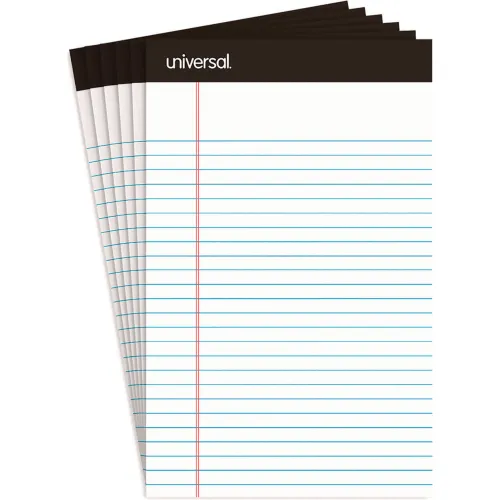 Universal One® Perforated Edge Ruled Writing Pads, Jr. Legal, 6/Pack, White