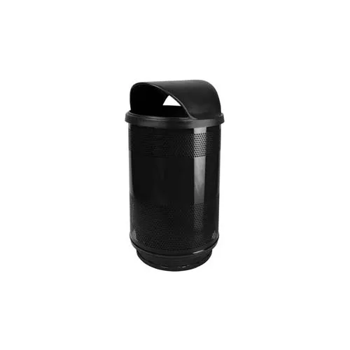 Witt Stadium Series® Perforated Steel Round Trash Can W/Hood Top, 55 Gallon, Black