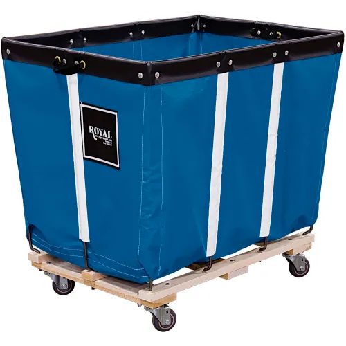 Royal Basket Trucks® Perm Liner Truck, 6 Bu, Blue Vinyl, Wood Base, All Swivel