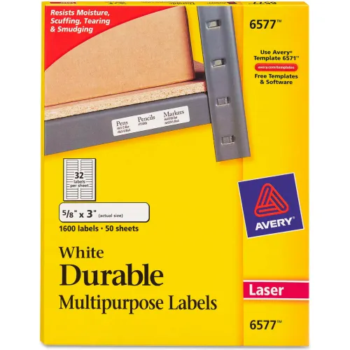 Avery® Permanent Durable ID Laser Labels, 5/8 x 3, White, 1600/Pack