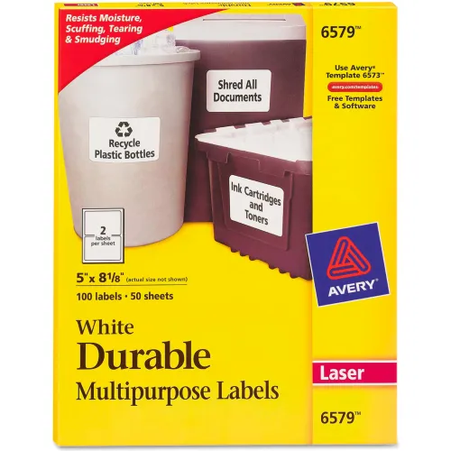 Avery® Permanent Durable ID Laser Labels, 5 x 8-1/8, White, 100/Pack